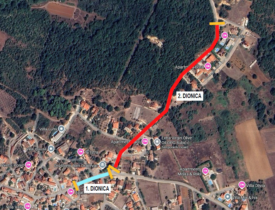 Obavještavamo da će zbog izvođenja asfalterskih radova u zoni zahvata izgrađene kanalizacijske mreže naselja Dračevac, od utorka 09.12.2025. do četvrtka 11.12.2025. godine biti privremeno zatvorene ceste u naselju Dračevac i to 1. dionica od autobusne stanice do raskrižja kod društvenog doma prema naselju Montižana te 2. dionica od raskrižja kod društvenog doma u Dračevcu prema naselju Radmani, sukladno situaciji u privitku. Školski autobus će koristi alternativni pravac Dračevac – Starići – Poreč.